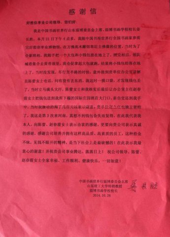 好想你職工拾金不昧傳遞正能量——淄博書畫學