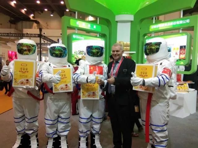 神秘“宇航員”驚現綠博會現場,別具“黑科技”特色的綠色食品吸引了大量的參展客商一探究竟。“是好想你航天黑科技‘清菲菲’”,有一個人高呼。經過了解知道好想你清菲菲是由若羌灰棗、古田銀耳、蘭州百合、湘潭湘蓮、寧夏枸杞五種原材經過凍干技術精心處理后形成的即食養生食品。慢燉兩小時,沖泡只需一分鐘,可以說是“美顏靚湯”。