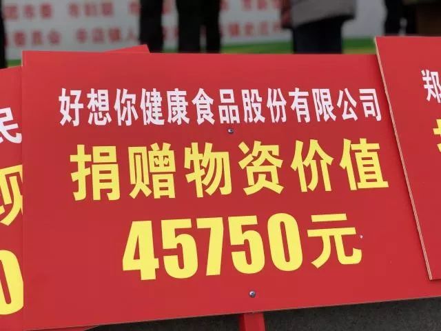 其中,好想你健康食品股份有限公司現場捐贈物資45750元,為農民朋友送去明星產品清菲菲紅棗湘蓮銀耳湯和胡小辣。
