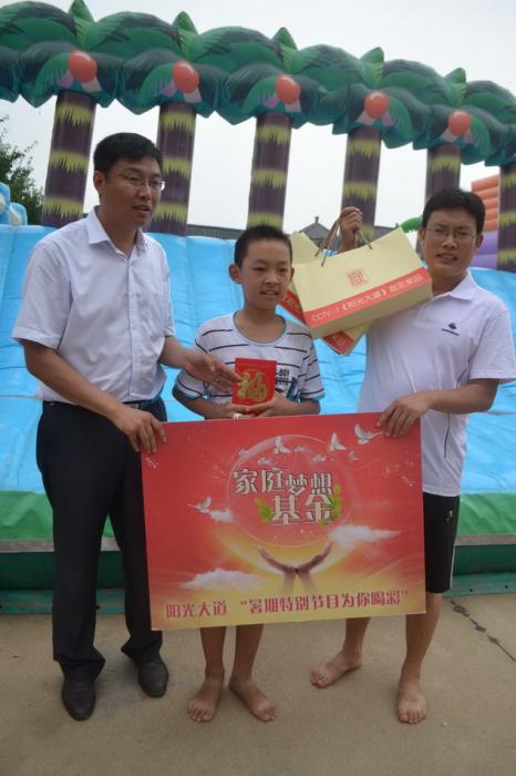 好想你股份有限公司華北大區經理武國峰為闖關成功的家庭頒發家庭夢想基金