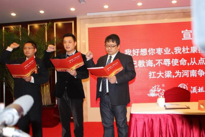 2012年3月8號下午,好想你棗業(yè)股份有限公司、信陽五云茶葉(集團)有限公司、洛陽杜康控股有限公司三家豫企聯(lián)手,在鄭州大河錦江飯店舉行了簡潔隆重的“中原新名片——感恩匯報會”。作為對省委書記、省人大常委會主任盧展工在全國兩會上為三家企業(yè)宣傳的感恩匯報行動,三家企業(yè)首次聯(lián)合舉辦了此次活動。三家企業(yè)負責人表示,今后將以省領(lǐng)導的關(guān)注、厚愛為契機,牢記領(lǐng)導重托、履行歷史使命,努力在中原經(jīng)濟區(qū)建設(shè)中做出更大貢獻,擦亮自身中原新名片這一金字招牌。來自中央、省、市及網(wǎng)絡(luò)等多家媒體記者參加了此次活動。