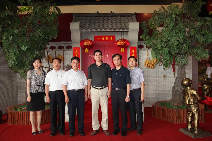 (證監局領導與公司副總石聚領在棗文化博覽中心農家小院前合影留念)
