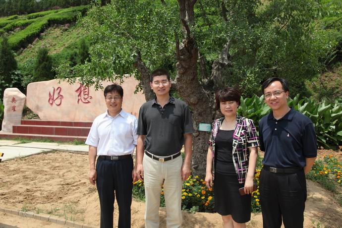 (證監局劉青松局長、新鄭市常務副市長孫淑芳、中原證券監事會主席周小全、公司副總經理石聚領在千年古棗樹前合影留念)