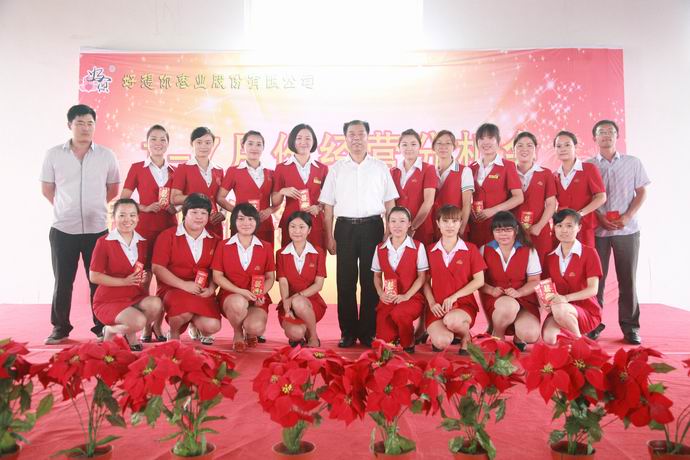 省外專賣店前十名、省內專賣店前十名、省區總經理前六名接受了頒獎,并與石聚彬董事長合影留念。銷售中心代表楊楠、孫曉娟、郭玉峰、石宏偉,生產中心代表孟喜峰、石建國與大家分享了各自的成功經驗。其中,孫曉娟的團隊還為大家做了精彩的勵志表演,激情的展示、昂揚的斗志、向上的精神博得了陣陣掌聲。
